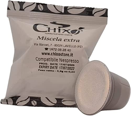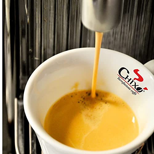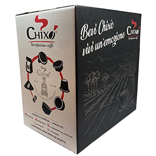 Mezcla extra de café Chixò en cápsulas compatibles con Nespresso de 5,9 g. Café con una excelente crema, consumido equilibrio, sabor amoroso y esencia persistente, en apartamiento o en la mostrador. La calidad de las materias primas seleccionadas y tostadas individualmente y la habilidad del maestro tostador harán de cada sorbo de café una experiencia inolvidable. ¡Si bebes café no conoces el Chixò!