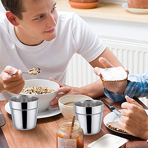 【Fácil De Limpiar】: El interior de la taza está pulido electrolíticamente y tiene un rematado cepillado en el exterior para que no se oxide. Es muy fácil de limpiar y apto para lavavajillas. También son perfectos para zumos, batidos, refrescos o agua. ¡A tus hijos también les encantarán!