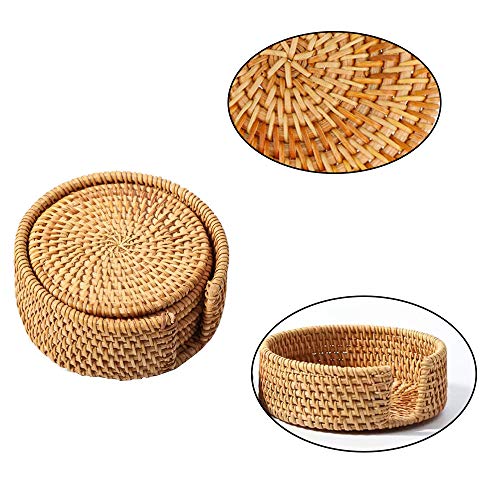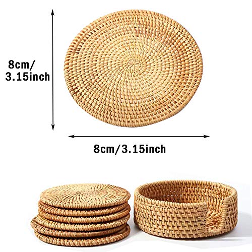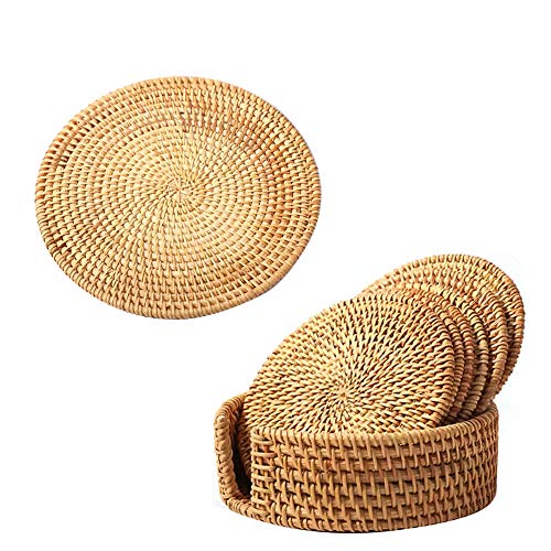 ★ Material Alta Calidad: Estos posavasos de ratán están tejidos a mano con enredaderas de otoño vietnamitas de alta calidad, que son muy adecuadas para la resistencia al encendimiento y las manchas. Tamaño Impreciso para tazas grandes de café y té.