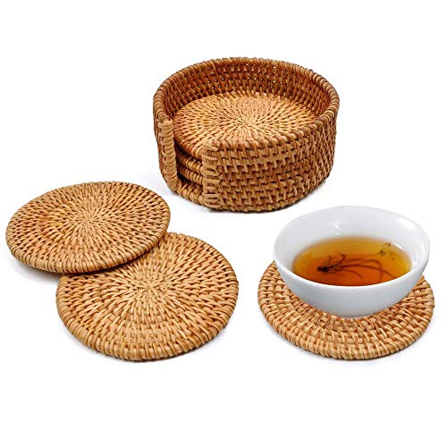 -Posavasos de ratán muy exóticos, completamente hechos a mano, gran decoración creativa de mesa y regalo, aptos para la mayoría de tazas de té y vasos para bebidas.