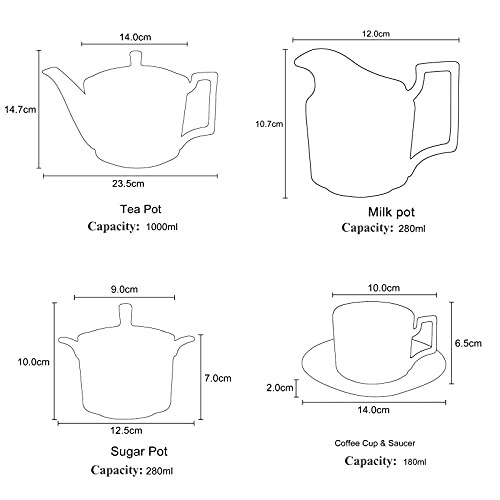 [Decoración elegante para el hogar] Estos juegos de té / tazas de café de porcelana real británica de exquisita artesanía agregarán clase de estilo y servirán como decoración en su mesa de comedor. Completo para café, leche, té, jugo y cualquier líquido que te guste.