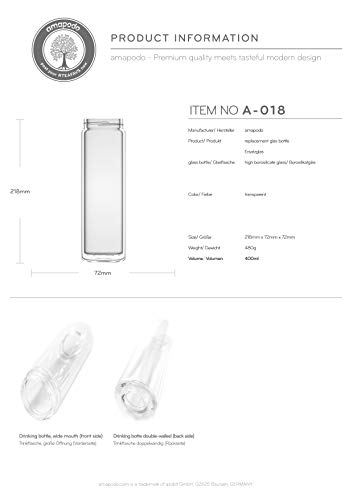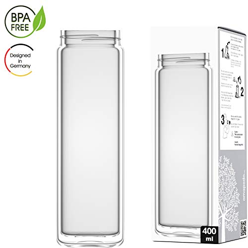 amapodo Cristal de Repuesto 400ml Transparente para Tetera, biberón, Botella de Vidrio, Vaso de té