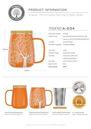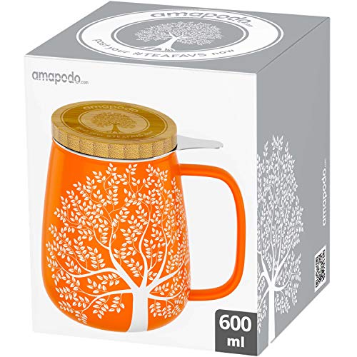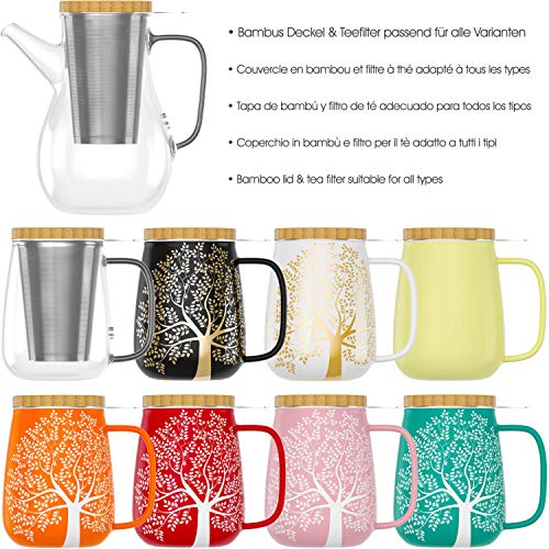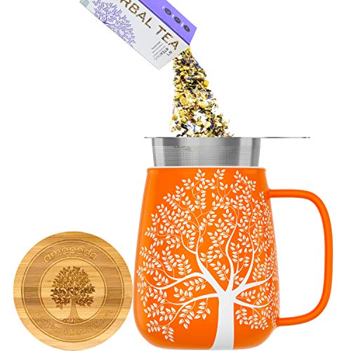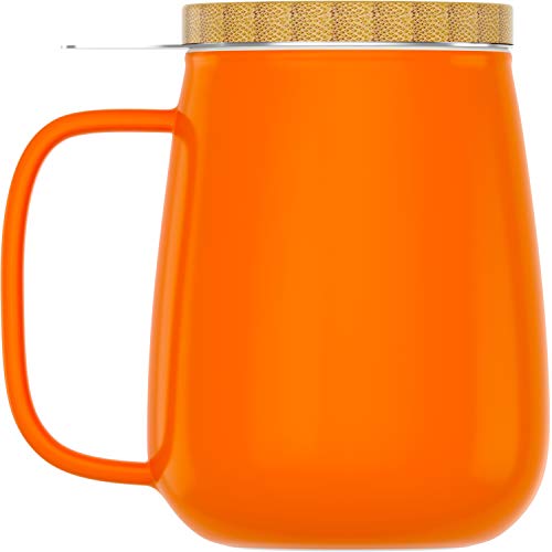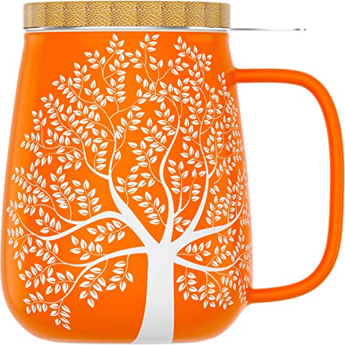 Taza de jumbo grande – de alfarería para té suelto con filtro de puñal inoxidable, tapa de bambú
