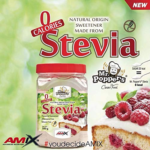EDULCORANTE SIN CALORÍAS: El endulzante Autóctono Stevia Mr. Poppers de Amix es un edulcorante 0% calorías. Es abstracto para usarlo en tus platos y bebidas sin retener calorías innecesarias ni azúcares que afectan al cuidado de tu cuerpo y salud. Podrás venerar de los sabores más dulces sin retener peso.