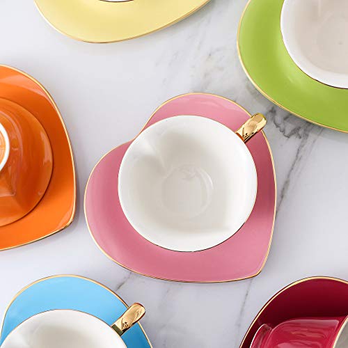 Diseño Ideal: La taza de porcelana se adapta a todas las máquinas de café comunes. Su diseño de forma de corazón y colorido los hace ideales para manualidades.
