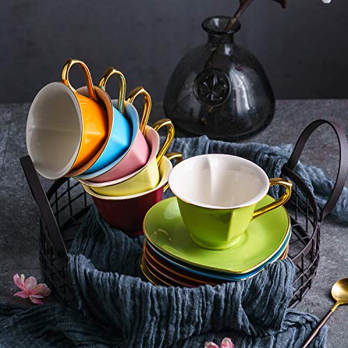 Artvigor 6 Juegos de Tazas de Café/Té de Porcelana Tazas de Cerámica, 150 ml, Juegos de Vajillas de Agua/Leche para…