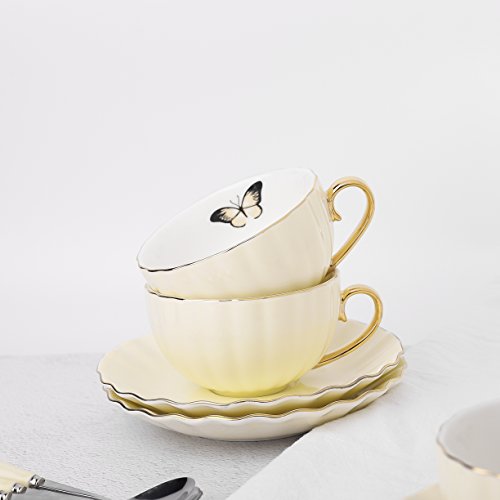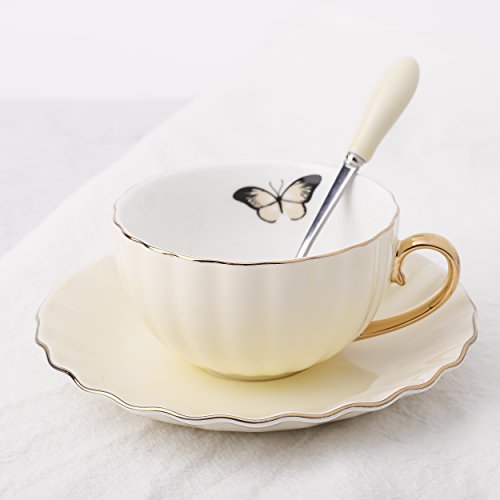 Gracias al diseño surcado, este producto se ve muy bien con una decoración de mariposa en el reborde de la taza, un verdadero punto de atracción sobre la mesa