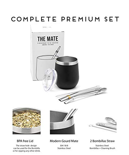 balibetov Set de Mate Argentino para Yerba Mate – Kit Mate de Vaso para Mate Pared Doble de Acero Inoxidable 18/8…