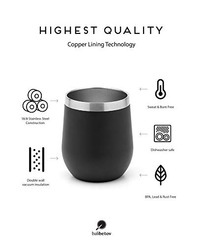 CALIDAD SUPERIOR: Este innovador BALIBETOV Gourd de primera calidad, acero inoxidable de grado alimenticio 18 / 8 y una tapa libre de BPA tiene capacidad para hasta 12 oz / 355 ml de mate. Una de las mejores calabazas modernas que encontrará en el mercado. Resistentes al óxido, duradero y apto para lavavajillas.