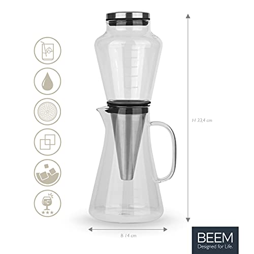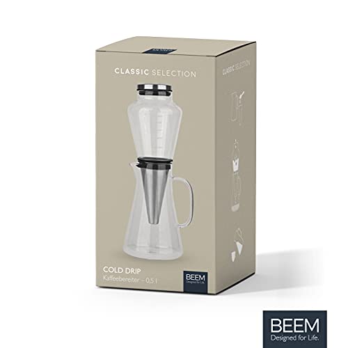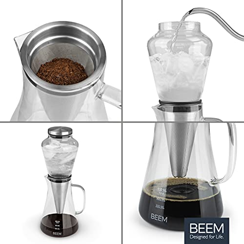 BEEM Cold Drip – Cafetera de émbolo (0,5 L, con filtro permanente de acero inoxidable, vidrio de borosilicato, para café…