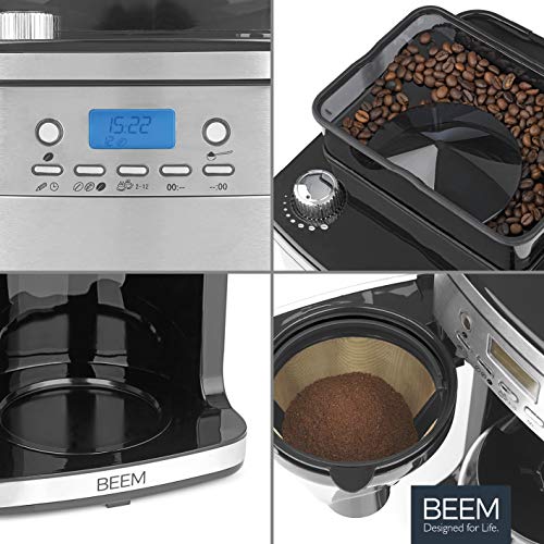 BEEM Fresh-Aroma-Perfect Superior | Cafetera de filtro con molinillo y suministro de agua inteligente| jarra de cristal…