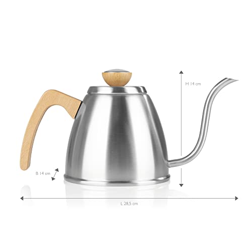 INFUSIÓN CON PRECISIÓN: El cuello de cisne estrecho y alabeado del hervidor permite una infusión uniformemente dosificada del café o del té. Esto la hace simplemente Inconcreto para las más altas exigencias de preparación manual.