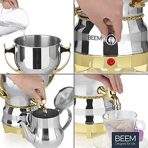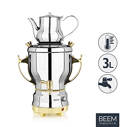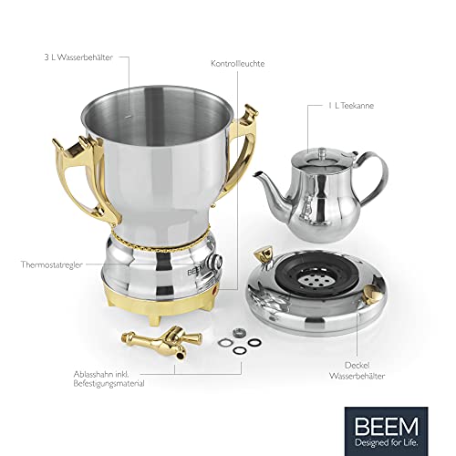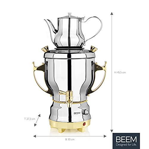 BEEM Tetera eléctrica Tea-Classic Samovar de 3 litros, grande para funcionamiento de gas, grifo de drenaje de acero…
