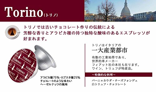 Paquete de 16 cápsulas de turino. El café de Turino es una elegante combinación de dureza, típica de las mezclas arábigas y de una gran prodigalidad aromática procedente de la antigua tradición chocolatera. Las recomendación sensoriales del chocolate y el sugestivo aroma de avellana envuelven el sabor de la mezcla turín dándole un cuerpo aterciopelado en un conjunto regular y refinado.