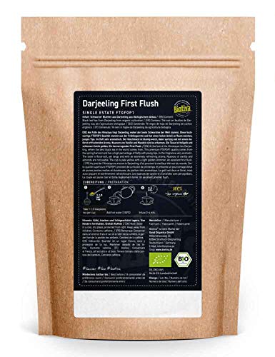 Biotiva Darjeeling First Flush orgánico 250 g – té negro orgánico superior – empacado en Alemania (DE-ÖKO-005) – vegano – té de hoja suelta