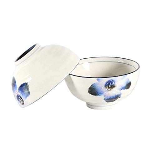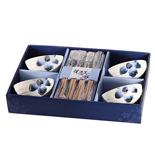 Juego de arroz lavado por 4 cuencos de porcelana y 4 pares de palillos, muy aceptablemente decorado con un borrador floral Zen japonés.