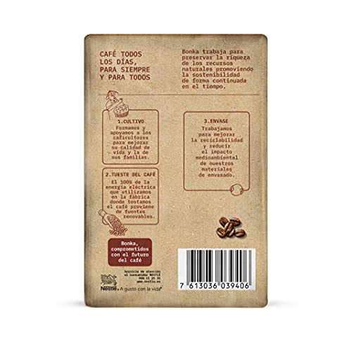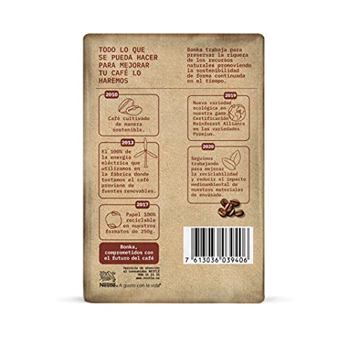 BONKA MOLIDO DESCAFEINADO es un café de cultivo sostenible, equilibrado y de cuerpo redondo. Su aroma seductor descubre matices tostados que sugieren toques especiados en el paladar. En BONKA, hemos adquirido un gran compromiso con el futuro del café. Con los que lo cultivan, con sus comunidades, y oquedad, con nuestro planeta. Por ello, todo nuestro café es de cultivo sostenible. Uno de los cafés que está en pleno proceso de acrecentamiento es el café molido descafeinado. Un ataque alternativo para todas aquellas personas amantes del café que quieren asociarse degustando una humeante taza a la hora del desayuno o después de la comida pero que no pueden convenir la cafeína. El café descafeinado es aquel café al que se le ha extraído la cafeína. Pese a que hay diversos métodos de extracción, la mejor alternativa es el proceso de descafeinización con agua. Es la forma más nativo y saludable. Tras pasar por el proceso de descafeinización, el café descafeinado puede variar en sabor y aroma respecto al café no descafeinado, resultando ligeramente más suave. En Bonka utilizamos un proceso de descafeinización nativo solo con agua que preserva el aroma y sabor del café, sin emplear productos químicos.