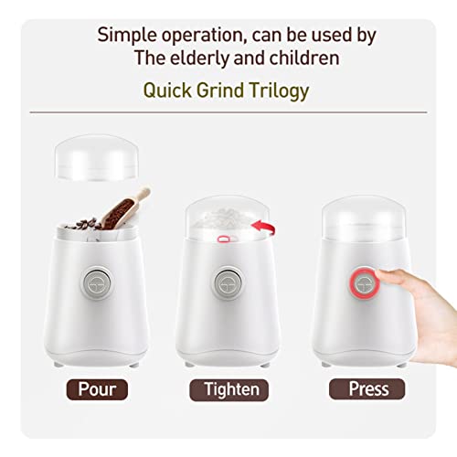 Taza de molienda no desmontable: este molinillo de café puede servir como una máquina de cocina versátil, use la pequeña máquina de molienda de mostrador como un molinillo de absceso en la cocina, un molinillo de nueces, un molinillo de pimienta, un molinillo de sal o un molinillo de especias para todo uso.