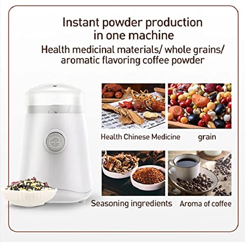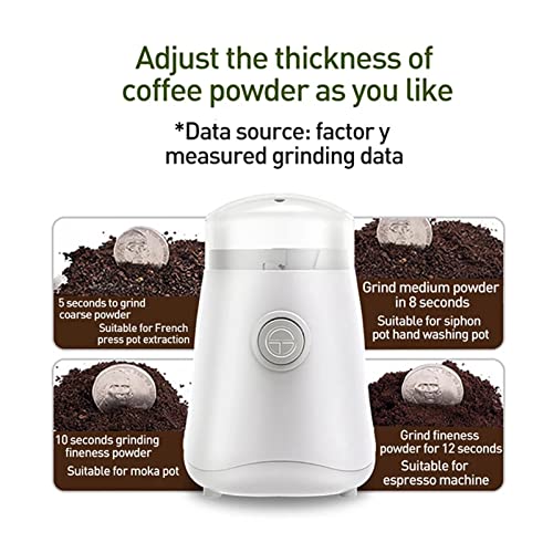Multiusos, gran capacidad: además del uso diario para moler granos de café, el molinillo de café eléctrico también puede moler especias, hierbas, nueces, varias semillas, avena, lino, linaza, chía, sésamo, pimienta, azúcar de roca, canela, comino, laurel, chile agreste, garbanzos, menta y otros materiales relativamente secos y crujientes y exuberante más. Puede moler alrededor de 50 gramos de café en polvo de una sola vez, lo que produce alrededor de 4 a 10 tazas de café. Cuanto más tiempo, más refinado