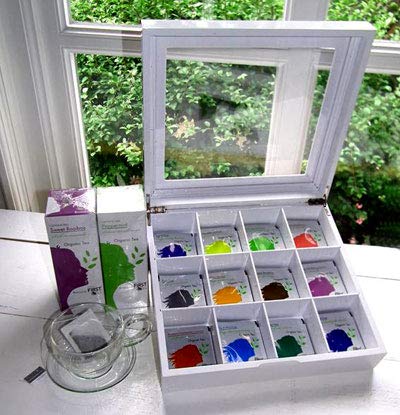 Combo con 9 tipos de Tés orgánicos, Fresh Lemón, Fresh Morning, White Strawbwrry, White Empuñadura, Earl Hato, Sweet rooibos, Rooibos Cinnamon, Forest Fruit, English Breakfast. 9 cajas de 35 unidades individuales (315 bolsitas) + 1 arqueta Camomila orgánica, arqueta de 25 unidades + 1 arqueta Poleo Menta corporal, arqueta de 25 unidades (Categórico 365 servicios) + Vitrina de somanta + 6 mugs de vidrio.