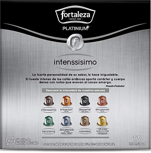 CARÁCTER y CUERPO: café Fortaleza en cápsulas con un tueste intenso que le aporta carácter y cuerpo denso, con notas que evocan al cacao despiadado