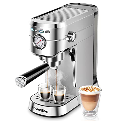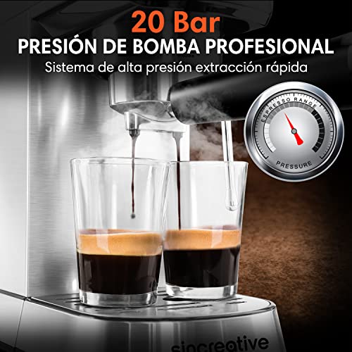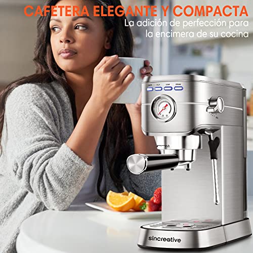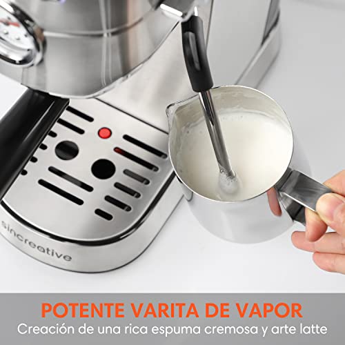 Sincreative Cafetera Express Steel para espressos y cappuccinos, 20 Bares de Presión cafetera barista, Brazo…