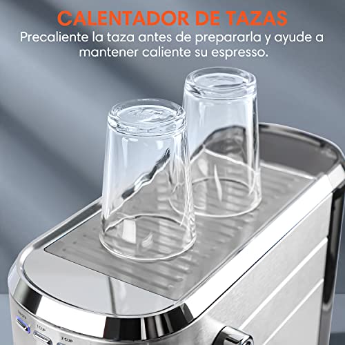 ☕ SISTEMA PROFESIONAL DE PRESIÓN DE 20 BARRAS: Esta máquina de café barista le brinda una extracción de alta calidad, lo que resulta en un aroma más fragante y rebosante. El manómetro incorporado acuse la presión exacta para ayudarlo a hacer ajustes de acuerdo con sus preferencias personales de gusto.