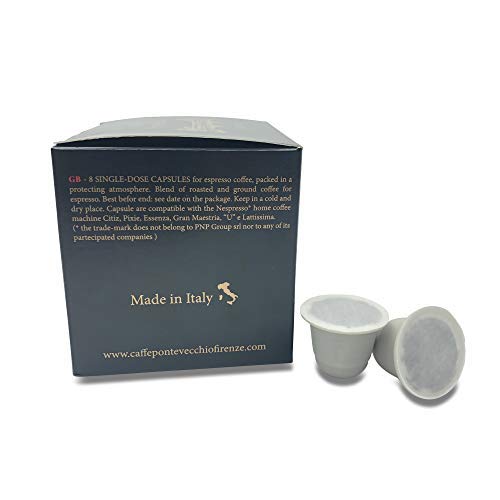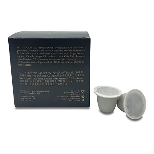 Cápsulas de café perfectamente compatibles con el sistema Nespresso, paquete que contiene 32 cápsulas con un sabor único, expresión aromática limpia caracterizada por el aroma definitivo y fragante debido a los diferentes procesos de fabricación. Enfriamiento: ocurre por separado para cada progenie individual. Este método garantiza que el café conserve distintos matices de aromas y sabores, que posteriormente se equilibran en perfecta armonía, lo cual es muy apreciable en la taza. Mezcla: La mezcla se compone de cualidades de calidad seleccionadas sin rodeos en los lugares de cultivo, es la fase en la que se combinan el sabor y el aroma del café. El «secreto» radica en abigarrar a sabiendas diferentes calidades de café en términos de cuerpo, mordacidad y dulzura, para conseguir una mezcla con características únicas. Caffè Pontevecchio ofrece un producto de excelencia solicitante de su nombre que ofrece una experiencia sensorial que seduce con matices de sabores y notas aromáticas de igual singularidad. A través de controles directos en toda la cadena de producción, desde el cultivo de la materia prima hasta la dispensación en la taza, cuidamos cada detalle con amor y sofoco, creando mezclas de muy alta calidad. La satisfacción de nuestros clientes es el corazón de todo lo que hacemos.