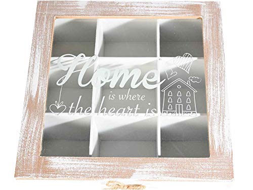 Idea de regalo para todos los amantes del té – Programa elegante: la arqueta de aprovisionamiento de té está dotada de una despacho de cristal que permite ver el espacio del té. Su Programa elegante y cocooning complementará aceptablemente la decoración de tu cocina, aportando una belleza exquisita. – Para uso en residencia, agencia o oficina. – Dimensiones: arqueta de 24 x 24,5 x 9 cm con 9 compartimentos de 7,5 x 7,5 x 6 cm cada uno.