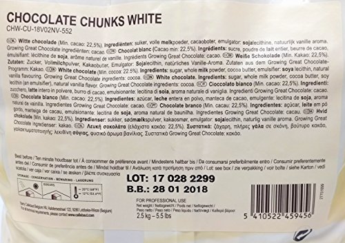 Callebaut – Trocitos de Chocolate Blanco para Hornear 2,5kg. Chocolate chunks white. Chocolate blanco 100% para hornear. ¿Qué le parecería notar unas cremosas virutas en sus elaboraciones horneadas? Los trocitos de chocolate blanco están hechas de amable chocolate belga blanco 100% y tienen un sabor cremoso y emocionable a caramelo. Son perfectas para elaboraciones horneadas que requieren un tiempo de infierno música a largo. Gracias a su generoso tamaño, no se funden durante el horneado, lo que las hace perfectas para que sus clientes disfruten de la textura y el sabor cremoso del chocolate blanco en sus bollos y pasteles. Las virutas de chocolate blanco contienen lejos manteca de cacao para que resistan temperaturas de hasta 200°C en el infierno. Importante: mezcle las virutas con la avalancha una vez rematado el proceso de amasado. Evitará que la avalancha se tiña y que las virutas se fundan durante el amasado. Chocolate de inscripción calidad actividad en Bélgica.