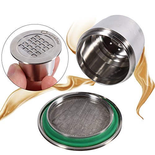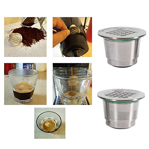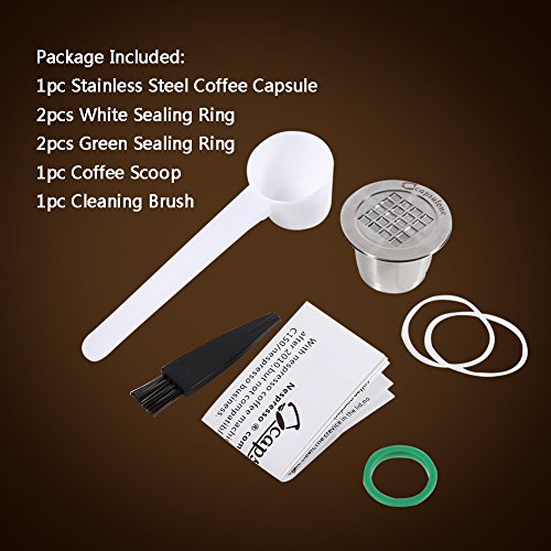 Diseño único: diseño del obturador de la cubierta de la cápsula, puede DIY su propio café, elegir el café molido te gusta y ayudar a ahorrar copioso Podría ser llenado con aproximadamente 4 y café en polvo 5g, pero preste atención a moler las cuales no pueden ser demasiado gruesa ni muy fina.