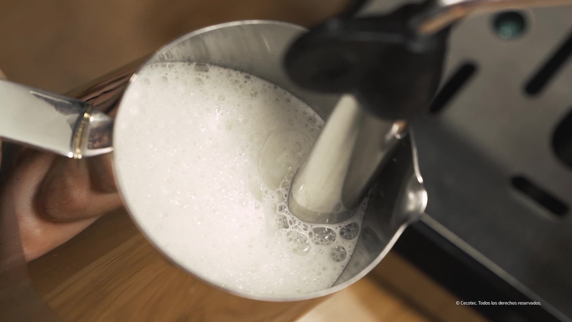 Incluye aerosol orientable con influencia para texturizar la leche a tu afecto y entrar la mejor espuma para tu café.