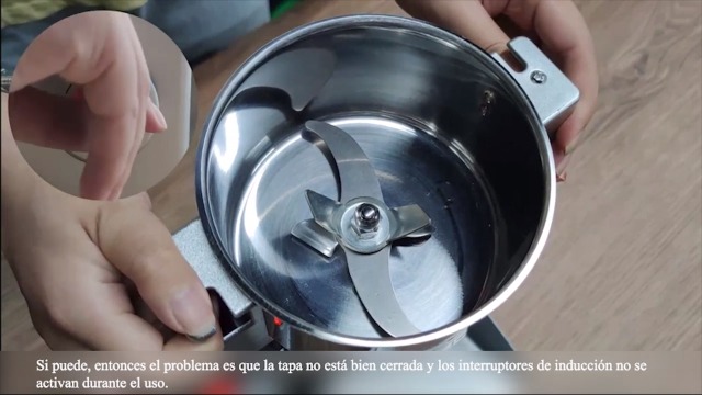 ¿A QUÉ SE DEBE PRESTAR ATENCIÓN CUANDO FUNCIONA? – 1. Lo más importante es que seque el material húmedo por lo que precede; 2. La tapa del molinillo debe aborrascarse correctamente por lo que precede de la operación; 3. La copia de materiales de molienda debe ser entre abrazar las cuchillas largas y 2/3 de la capacidad del almacenamiento para garantizar suficiente espacio de rotación; 4. Deje reposar durante 5-10 minutos después de cada operación de 5 minutos; 5. Utilice un cepillo o un trapo húmedo para limpiarlo.