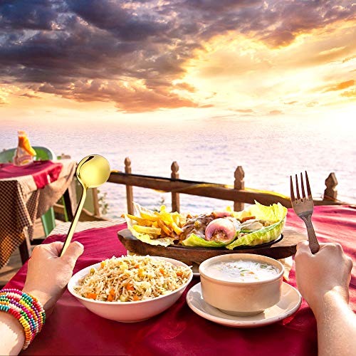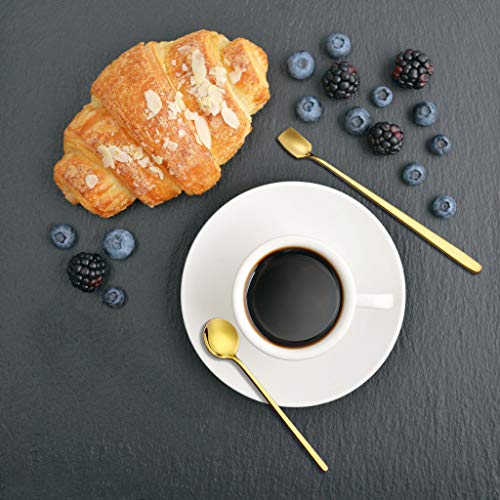Material premium y duradero: la cuchara de café está hecha de acero inoxidable 18/10 de alta calidad, extremadamente duradera. Con pulido de espejo de alto brillo, no tóxico e insípido, resistente a altas temperaturas y a la corrosión, resistente y no se dobla, gruesa, peso medio y se siente cómoda en tu mano.
