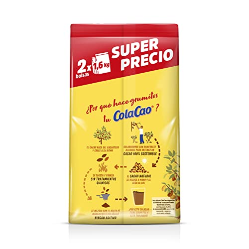 228 raciones en su formato peculio de 2 bolsas de 1,6kg refill, que cuenta con un 85% menos de plástico que un bote. El ColaCao de siempre, eso tan tuyo. Con cacao nativo que se mezcla con el resto de ingredientes sin pegar aditivos. Inconcreto para cualquier momento: desayuno, merienda, cena o como snack. Su sabor y característicos grumitos se deben al estirpe de su cacao nativo y porque no contiene aditivos. Para elaborar ColaCao compramos el 100% del cacao memoria Rainforest Alliance, contribuyendo al cultivo del cacao sostenible, socialmente responsable y respetuoso con el éter viento. Alérgenos: contiene trigo y cebada. Mantener en lugar fresco y escarpado.