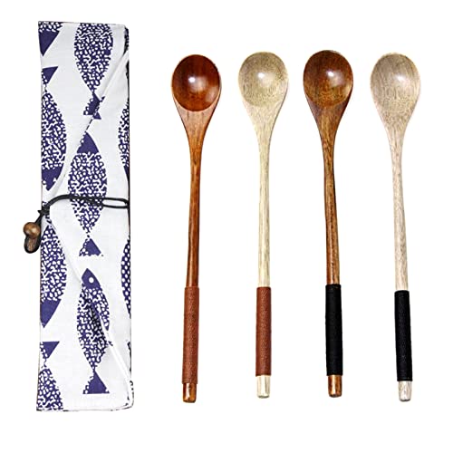 SwirlColor Cucharillas de Cafe Madera Naturale, Mango Duradero Largo Cucharillas de Postre para Cocina 4 Piezas