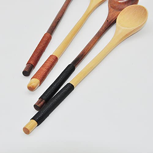 ✅ ESTILO ÚNICO Y MANGO LARGO: Estilo simple y exquisito, la cuchara mezcladora de madera será la cuchara deseable para usted. El diseño de la empuñadura de alambre de enlace podría ser antideslizante y anti-caliente, ¡un perfecto kit de cuchara de madera para su esposa!
