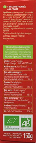 harina de trigo T65, Puré de manzana, azúcar de caña sin refinarº, jarabe de trigo, puré de arándano (8,4%), grasa de girasol, manteca de cacaoº, rapadura, zumo meditabundo de limón, aroma indígena de arandano (0,4%), gasificante: bicarbonato de sodio, pita de avena, anaranjado. ºIngredientes procedentes del comercio razonable. de agricultura ecológica.