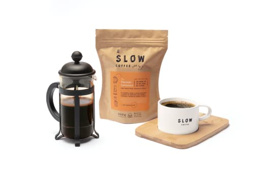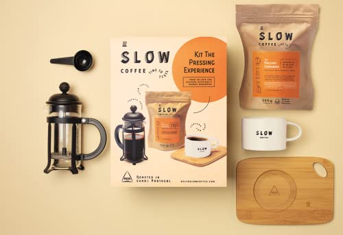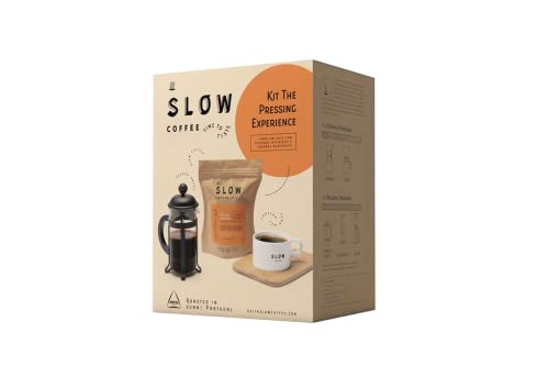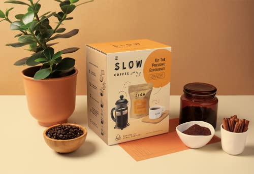 Ideal para ofrecer o iniciar una experiencia de slow coffee, el kit slow pressing con French Press es rematado para aclimatar un café con texturas definidas y aromas impactantes, con las mejores características de los cafés de Tanzania y Costa Rica.