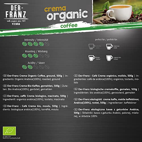 Der-Franz – Café Crema Organic con memoria UTZ, molido, 4 x 500 g