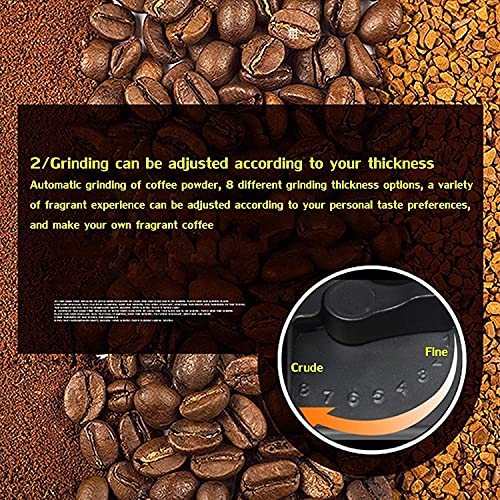 La molienda se puede sincronizar de acuerdo con el grosor de control, la molienda automática de café en polvo, 8 tipos de opciones de grosor de molienda, se puede sincronizar una variedad de experiencias aromáticas de acuerdo con sus preferencias de gusto personal y hacer su propio café fragante.