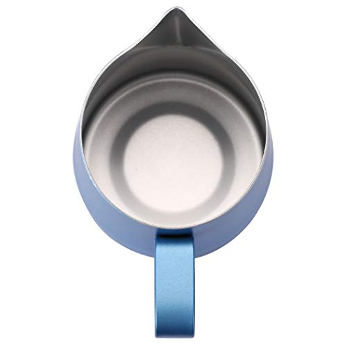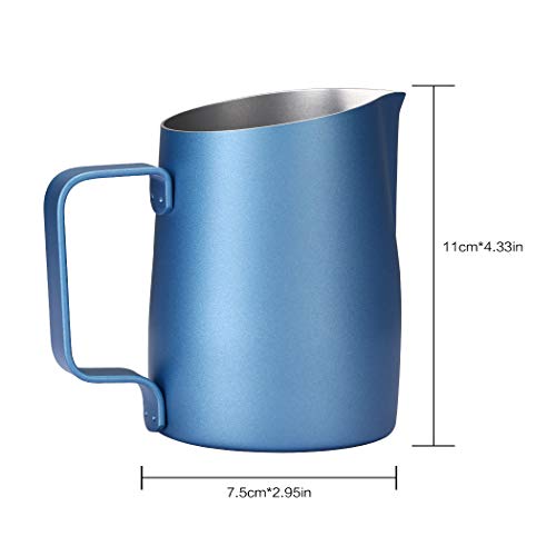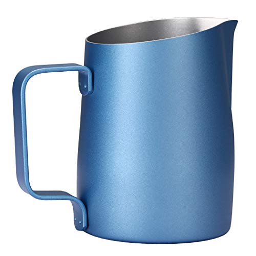 Esta jarra de jarra de espuma de leche está perfectamente diseñada para la leche con espuma, este gadget también puede ayudarlo con la preparación de café o chocolate.