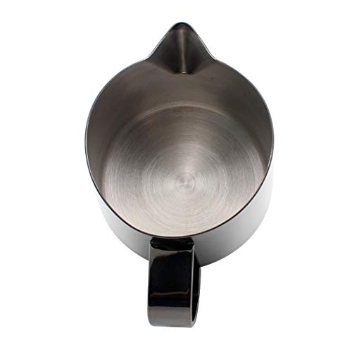 Esta jarra de jarra de espuma de leche está perfectamente diseñada para la leche espumosa, este gadget también puede ayudarlo con la preparación de café o chocolate.