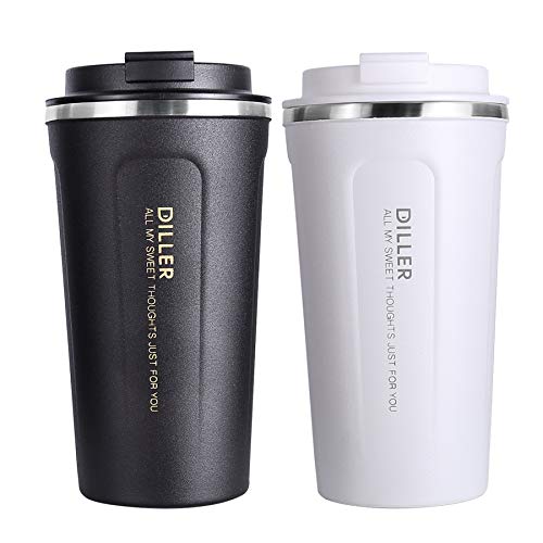 Diller Voyages Classic IT8768 – Tazas de viaje para café térmicas de acero inoxidable, 450 ml, color blanco