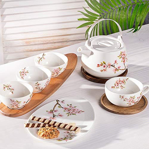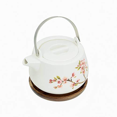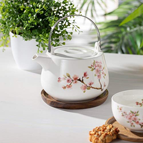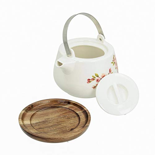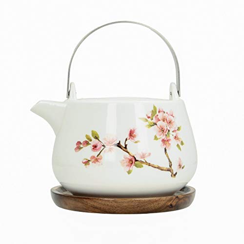 Easy Life 1089SAKU – Caja de tetera (75 cl, porcelana, con base de ACACIA SAKURA, multicolor