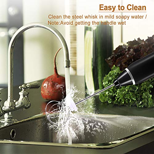Fácil de Limpiar – el cabezal de mezcla de acero inoxidable del espumador de leche se puede quitar y reemplazar y es fácil de limpiar con agua corriente (NOTA: el cuerpo de la máquina de espuma de leche no es impermeable, así que no lo sumerja en agua).