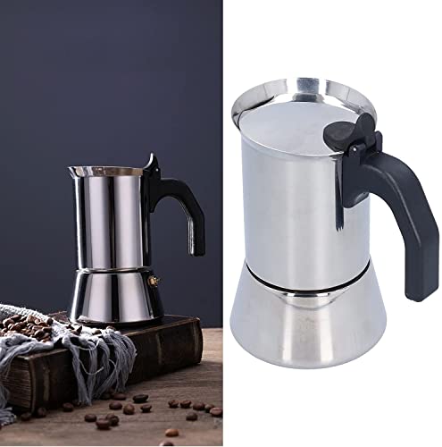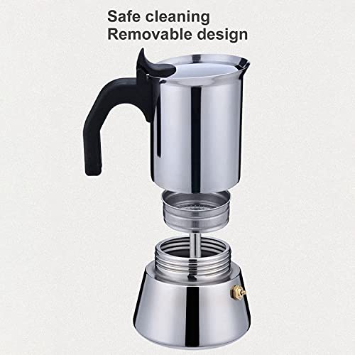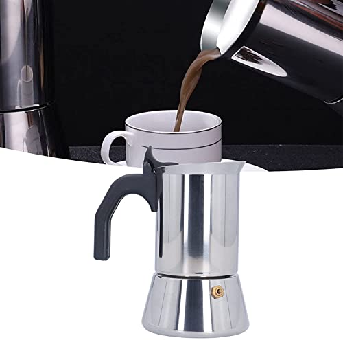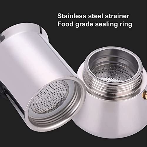 Esta olla de cafetería Moka está hecha de material de hoja inoxidable premium, cáustico a la corrosión, cáustico a la óxido y fácil de limpiar.