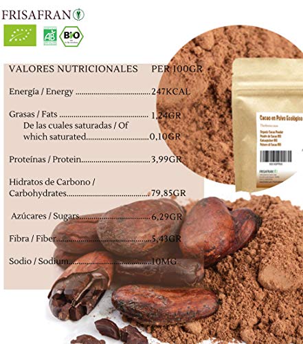 FRISAFRAN – Cacao Ecológico |En polvo | proveniente de la torta del cacao pulverizada | Beneficioso para la piel y el…