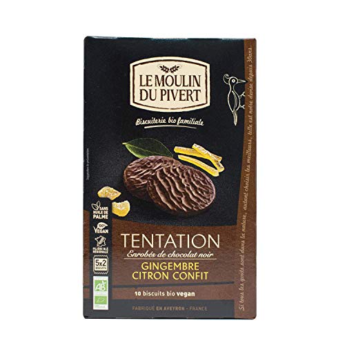 Deliciosas galletas tentación de jengibre y limón, cubiertas de intenso chocolate negro. Elaboradas con ingredientes de cultivo ecológico, sin unto de palma y sin huevo. La combinación de jengibre, chocolate y limón aporta a las galletas un sabor y un aroma únicos. Presentadas en un afable formato monodosis para llevarlas adonde quieras y admirar de su sabor en cualquier momento del día. Fuente de cabuya.