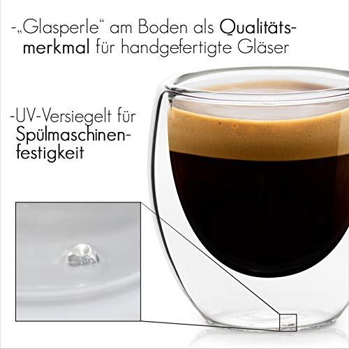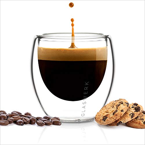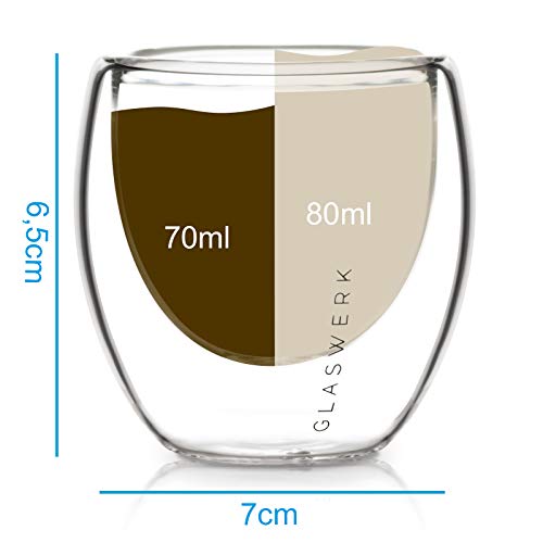 GLASWERK – Tazas de Café Expresso (4x 70 ml), Vasos Café Cristal Doble Pared de Borosilicato, Tazas Café Grandes, Vasos…